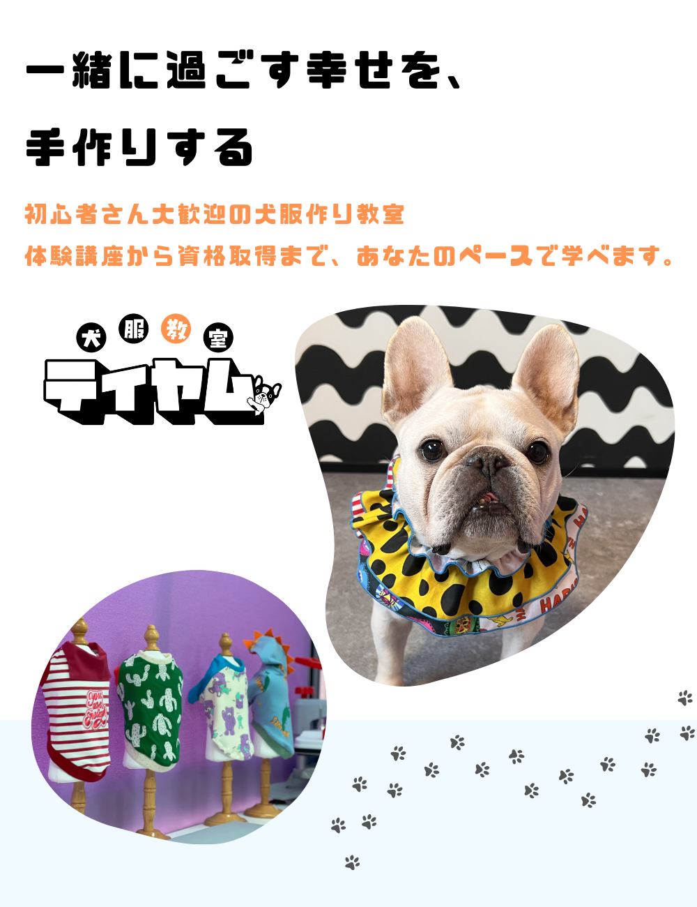 そんな想いを持つ方のための奈良市の犬服教室です。犬服教室ティヤムは、奈良県奈良市にある対面専門の犬服作り教室。